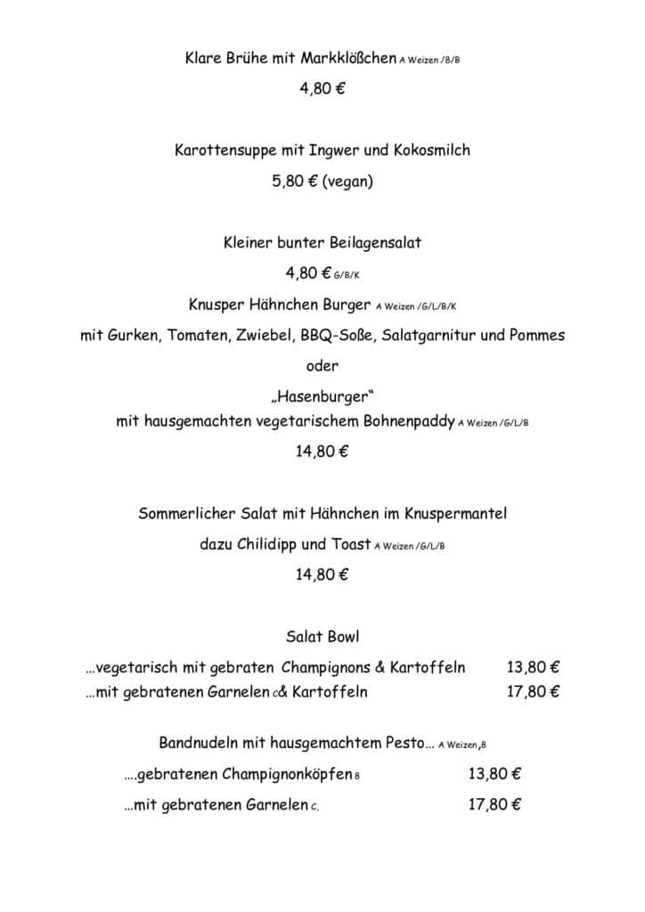 Vesperkarte – Salate & Suppen – Hauptgerichte & Desserts